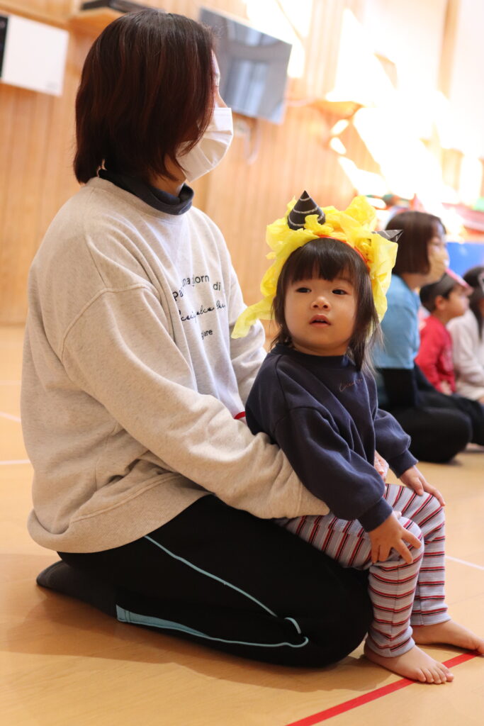 「みんなのおなかの中にも、こんなオニはいないかな?」と問いかけると、子どもたちは「いな~い✨」「いるー!😆」と楽しそうに答えていました😊